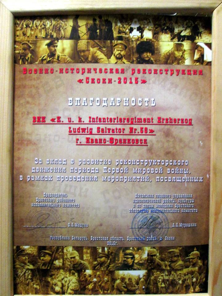 Военно-исторический фестиваль"Берестейское перемирье -2015" (д. Скоки, Брестской обл., Республика Беларусь) 11 - 13 грудня 2015 р. в с. Скоки Брестського району відбулися пам'ятні заходи, присвячені підписанню Брестського перемир'я 1917 року. Ініціаторами та організаторами заходів стали: Брестський облвиконком, Брестський райвиконком, Місцевий благодійний фонд «Фортифікація Бреста», історико-меморіальний музей «Садиба Нємцевичів», ГВІР «Рубіж». Традиційно захід розпочинає науково-практична конференція. Серед учасників конференції цього року були науковці Республіки Білорусь, Російської Федерації та України (старший науковий співробітник відділу охорони культурної спадщини Національного заповідника «Давній Галич» Андрій Чемеринський).